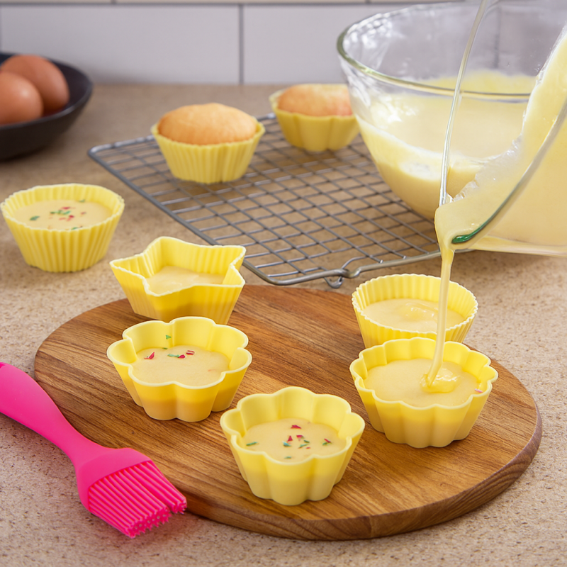✔️ 6 бр цветни силиконови форми – идеални за мъфини, тарталети или други мини десерти