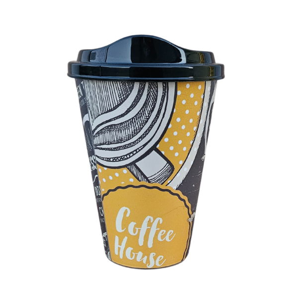 Чаша за кафе с капак  е изработена от , висококачествена и безвредна пластмаса