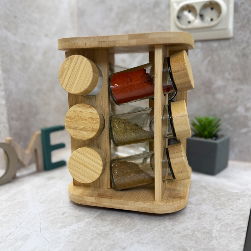 Практично решение за съхранение на различни подправки, което спестява място и осигурява бърз достъп до съдържанието.