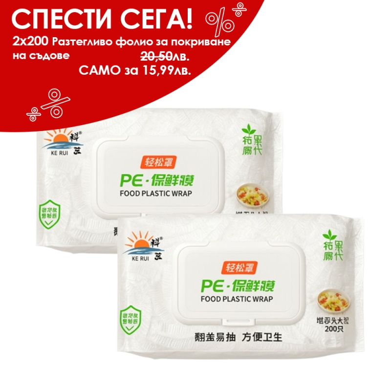 Разтегливо фолио за покриване на съдове – 2 опаковки × 200 бр. (400 бр.)